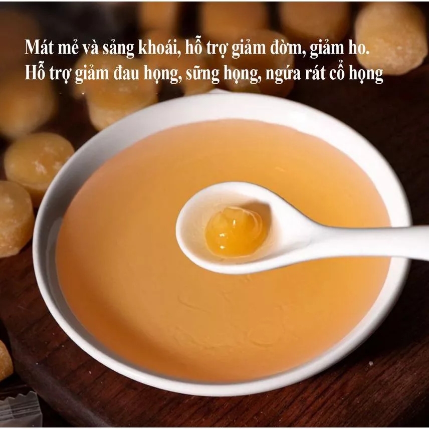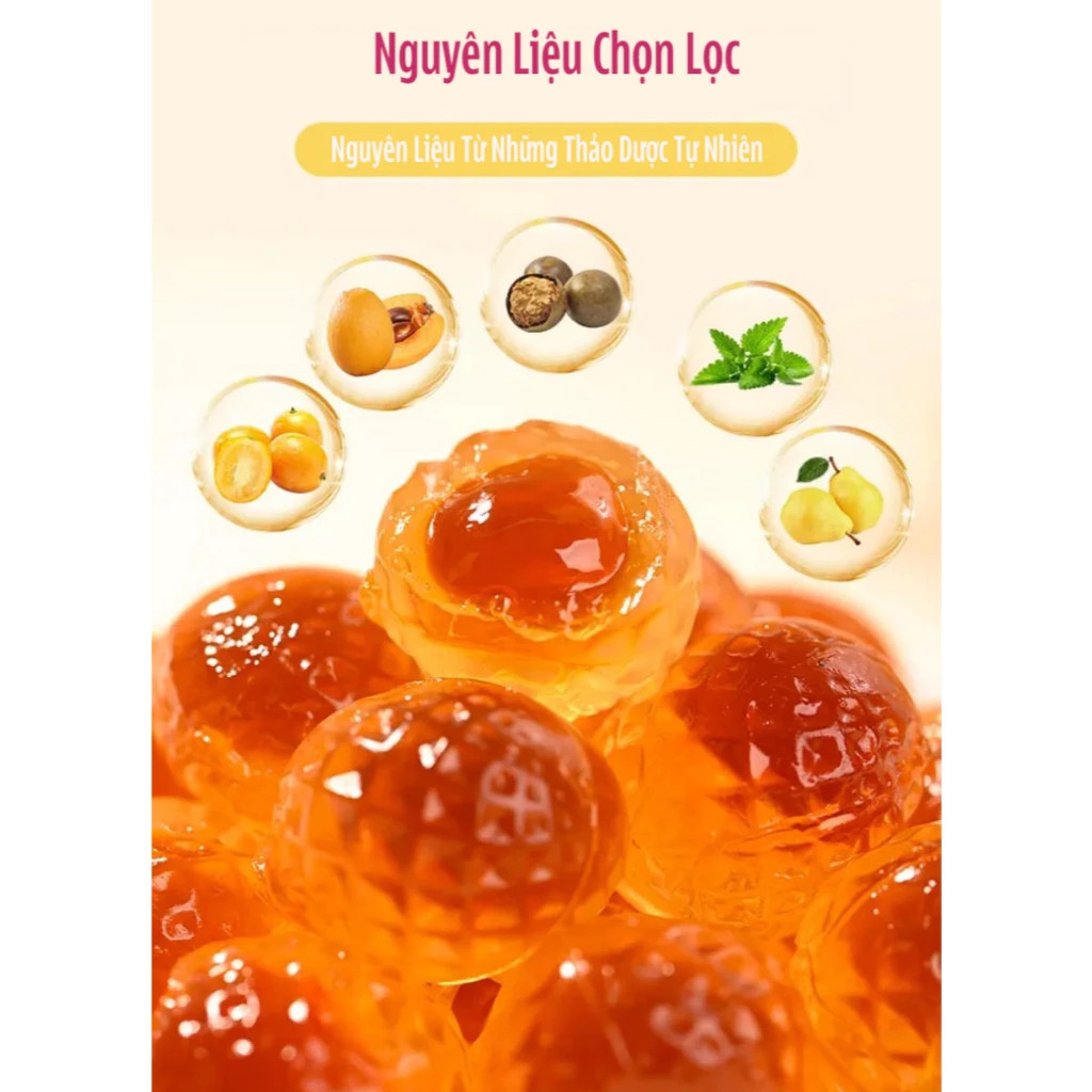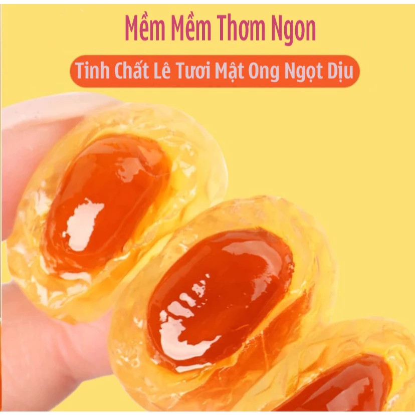 Kẹo Lê An Phế Mật Ong – làm từ lê tuyết, mật ong, chanh tươi, bạc hà, thảo mộc thiên nhiên. Viên kẹo dẻo mềm, ngọt dịu, the mát, dễ tan trong miệng.